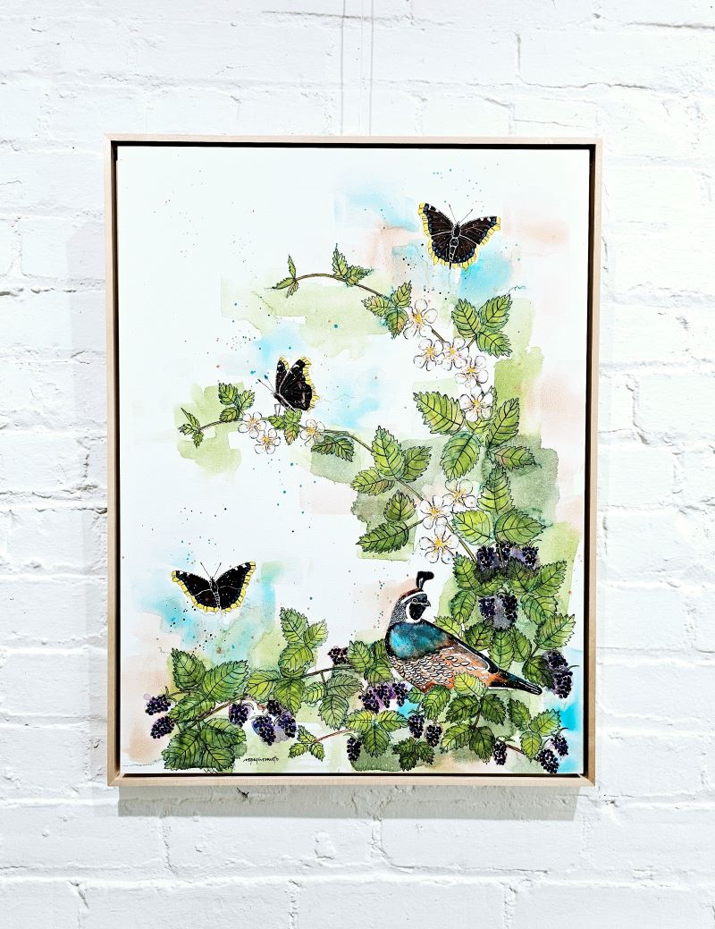 A Coy Quail is available for purchase, but will hang in the City of Sacramento's Mayor's Gallery during the month of October 2024. The artwork will be available to ship or take home in November 2024.