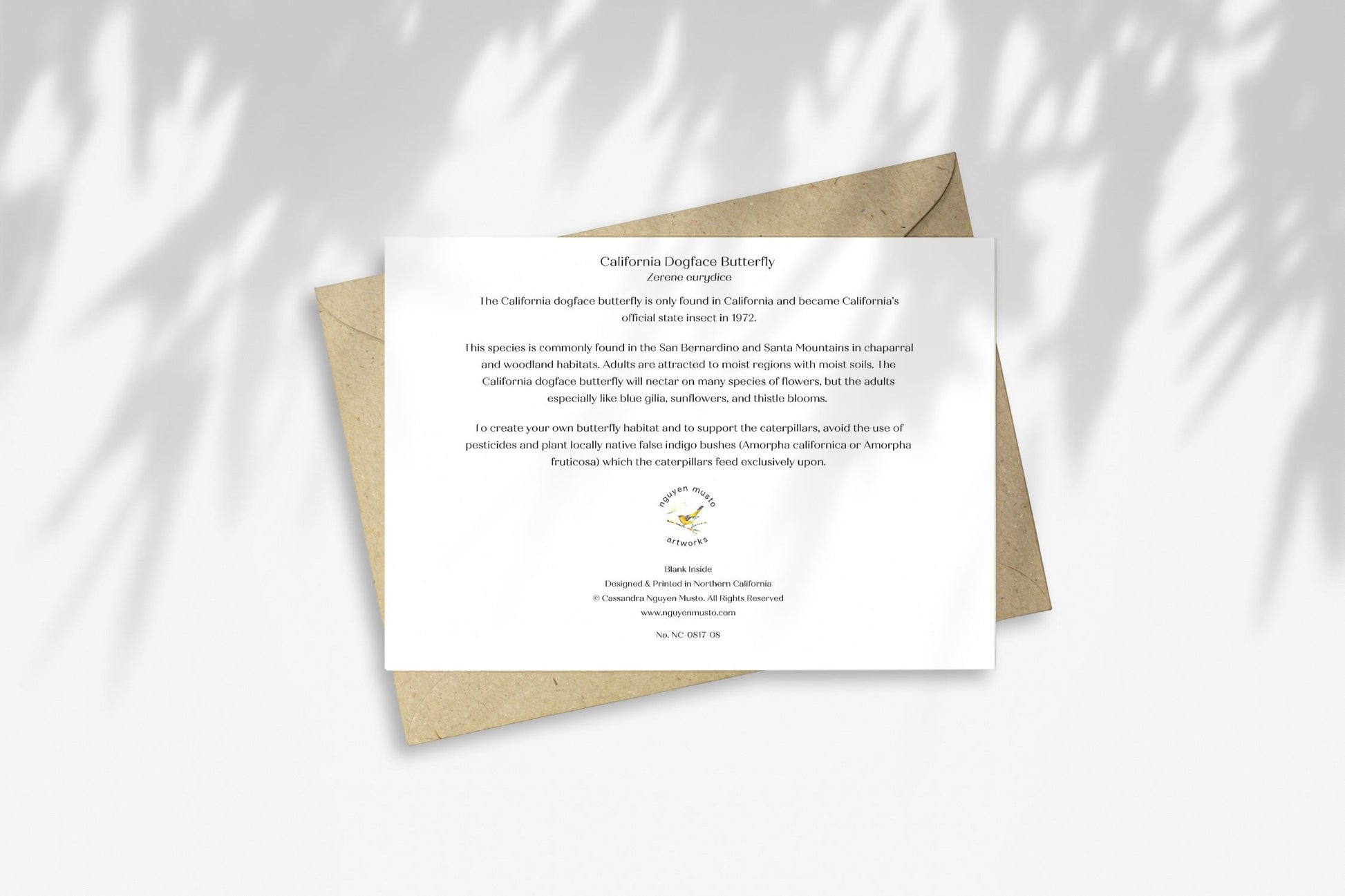 Introducing the stunning California dogface butterfly notecard, an ode to the state insect of California.